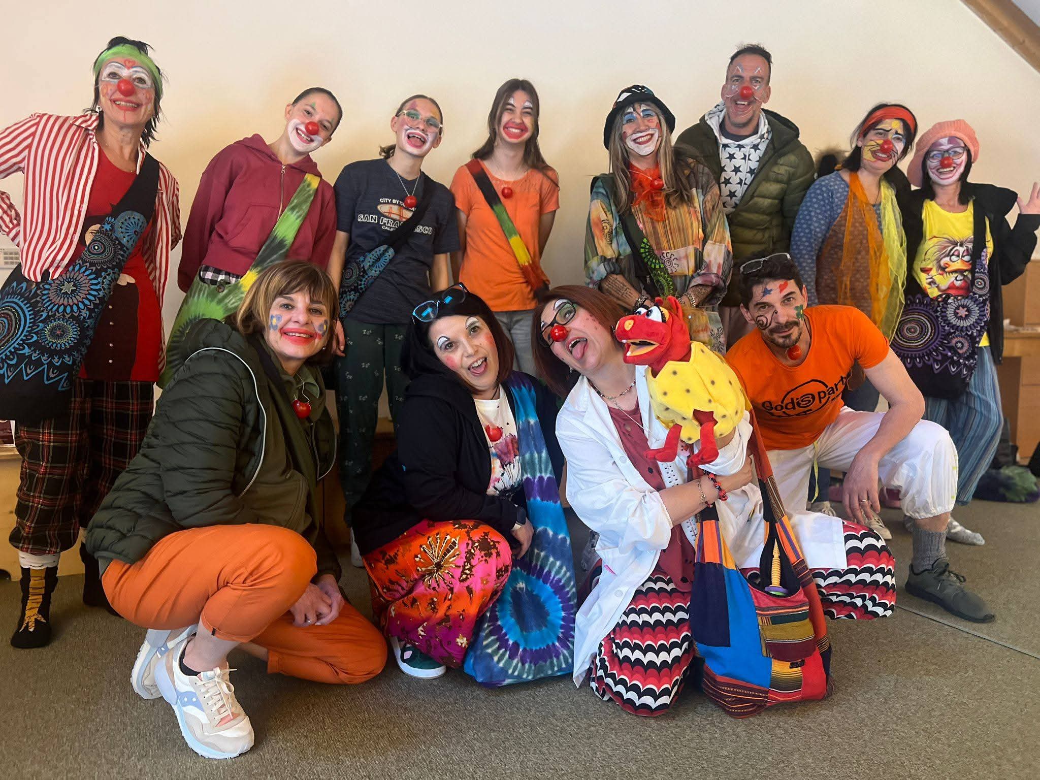 Siamo un gruppo di persone accomunate dalla voglia di creare piccoli momenti gioiosi nei luoghi in cui la gioia sembra essersi nascosta. Ci piace andare incontro all’Altro e amiamo farlo con la forza della delicatezza e del sorriso. Attraverso il clown e il suo naso rosso, abbiamo sperimentato il potere della risata e desideriamo condividerlo con più persone possibili: grandi e piccoli, giovani e anziani, insomma, proprio con tutti! Alcuni di noi vengono dal mondo del teatro, altri dalla scuola; c’è chi lavora in ambito sanitario, chi ancora nel volontariato, ma ci siamo riconosciuti tutti nell’intenzione di camminare insieme per scambiare un sorriso con tutti quelli che incontriamo sulla nostra strada… e di quella, ne vogliamo fare tanta!